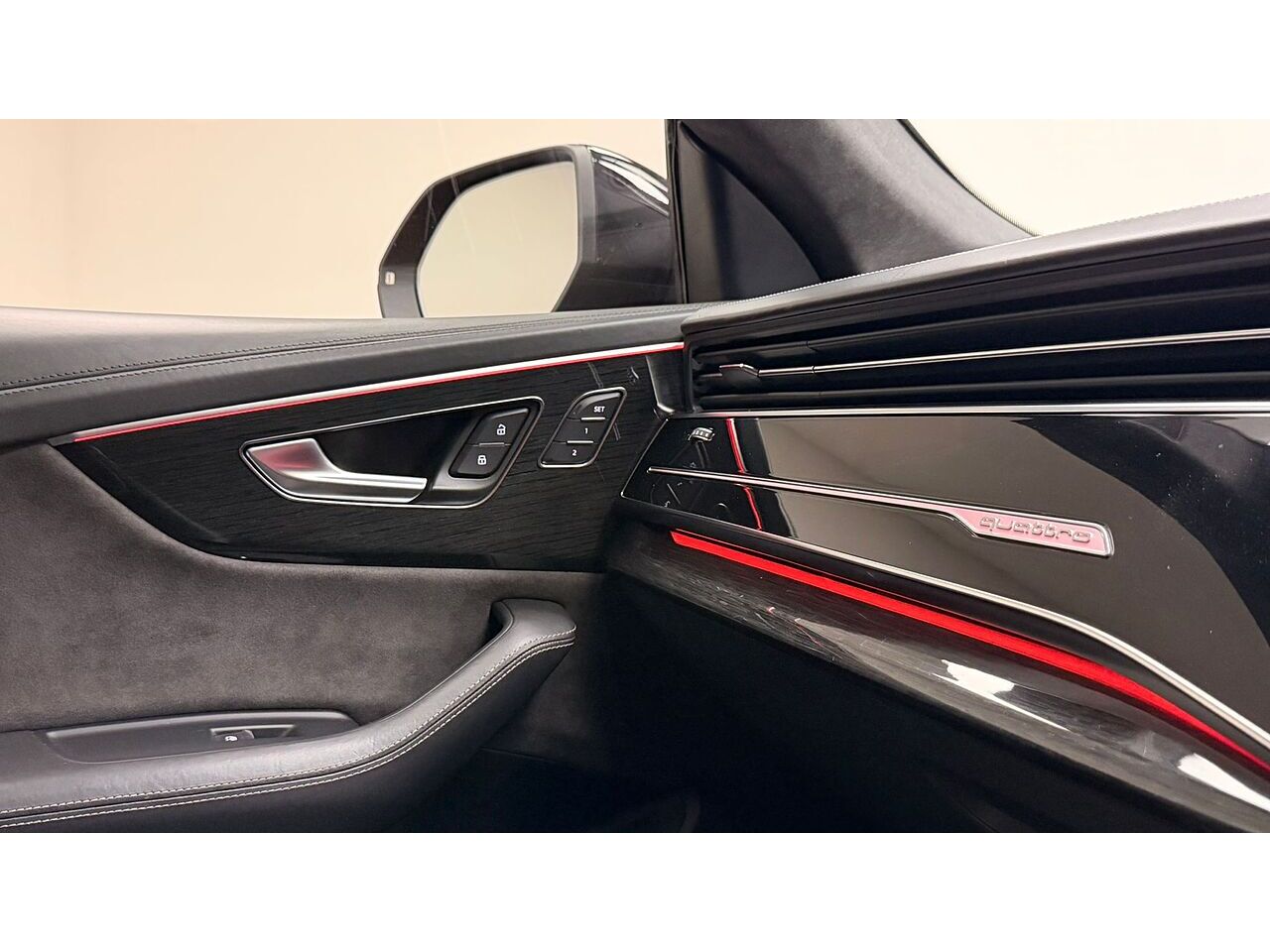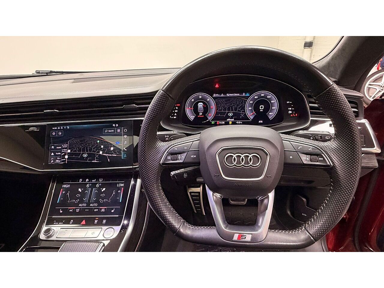 £10770 OF AUDI OPTIONS - Extended leather package, Comfort and Sound Pack, Panoramic glass sunroof, 22" Alloy Wheels, Matador Red, metallic, 3-spoke flat-bottomed leather multi-function Sports steering wheel